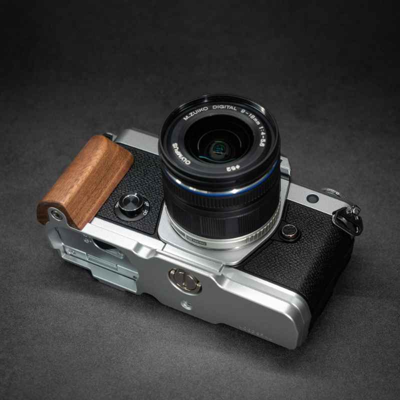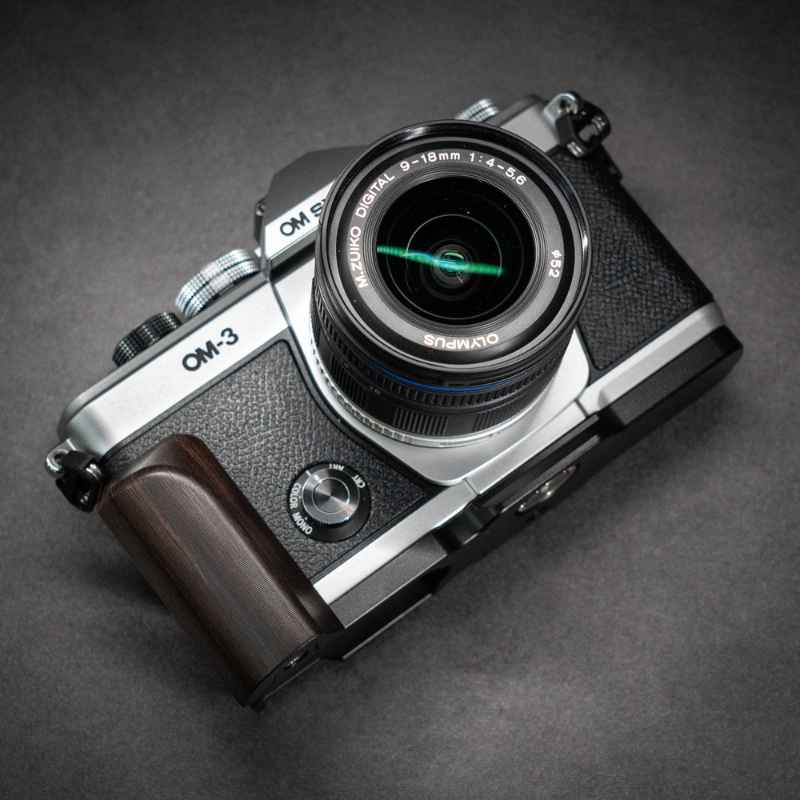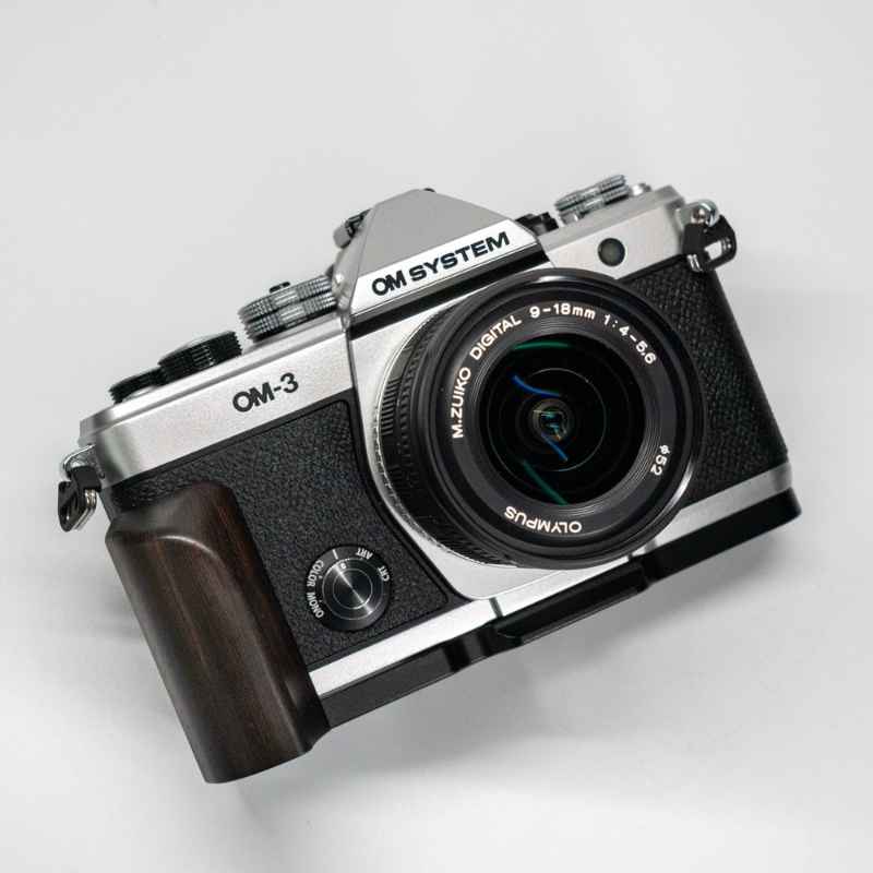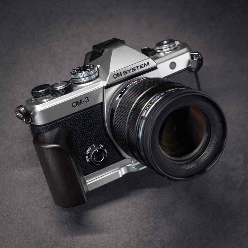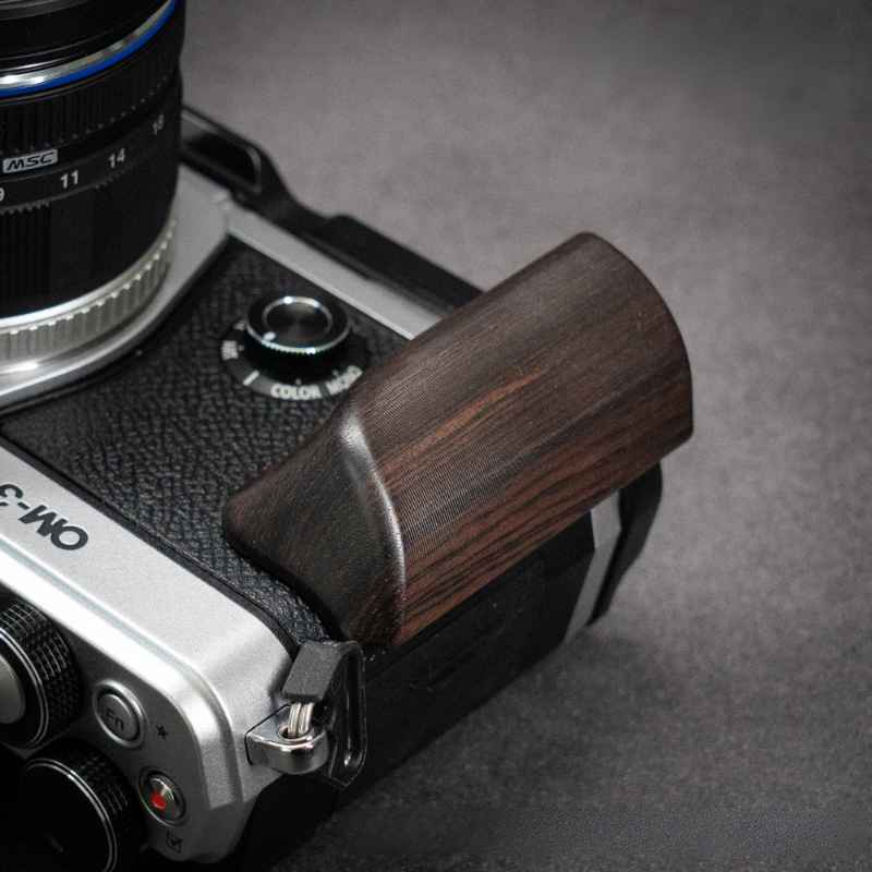 What are the advantages of selecting a wooden grip for your OM3 camera?