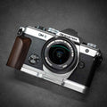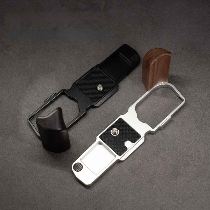 Each grip features a durable CNC-machined aluminum base plate that matches either black or silver to perfectly match your OM System OM-3 body.
