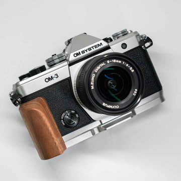 The L-Shape OM3 Wooden Camera Grip represents an upgraded OM3 camera experience through its handcrafted design that combines elegance with comfort and maximum functionality.