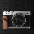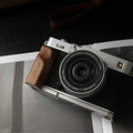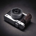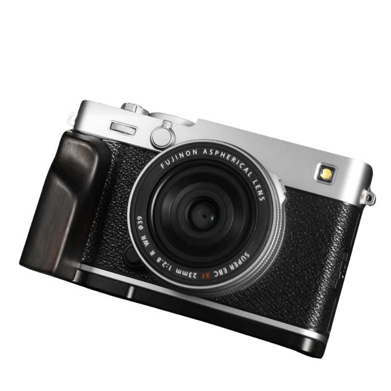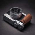 The handcrafted wooden grip serves as a style and comfort enhancement tool for your Fuji X-E5 which photographers value for both functionality and performance. The grip consists of premium real hardwood which pairs with a solid CNC-machined aluminum base that matches camera body styles in silver or black.