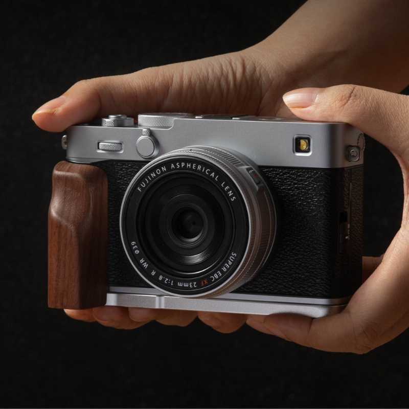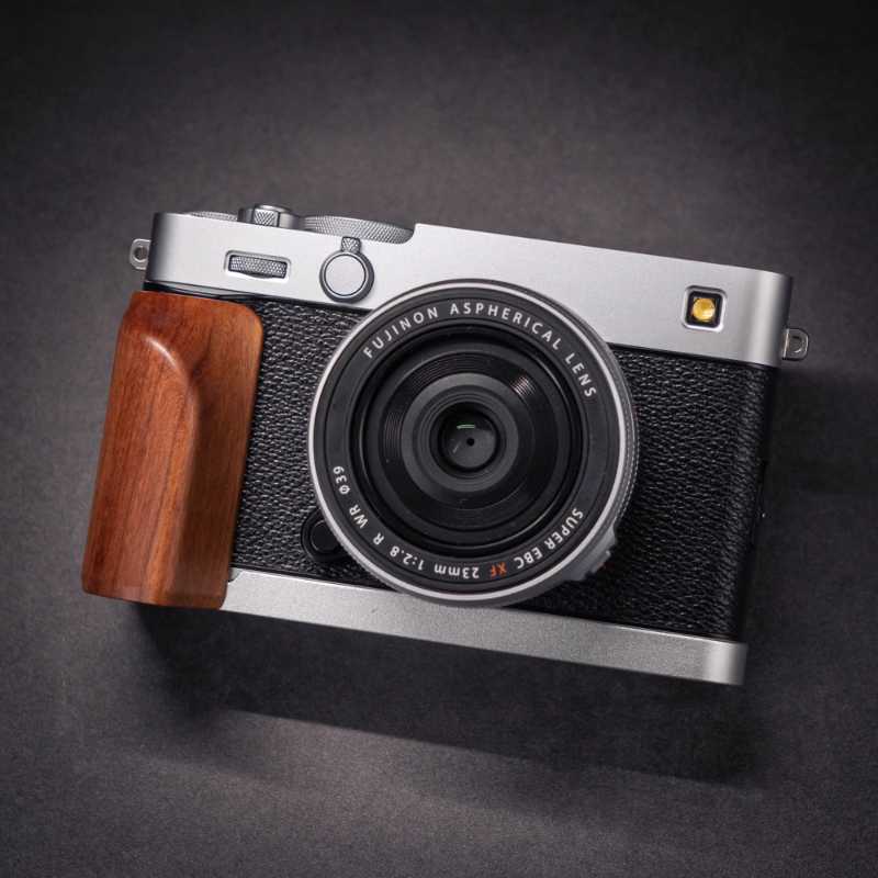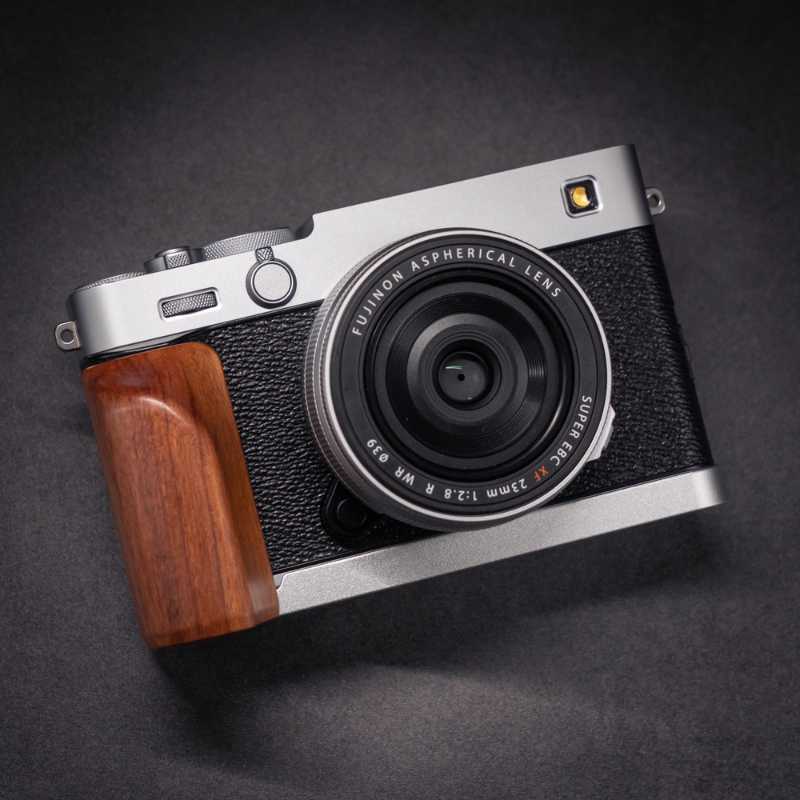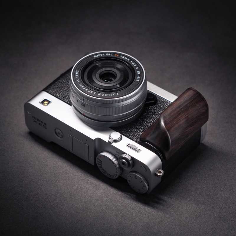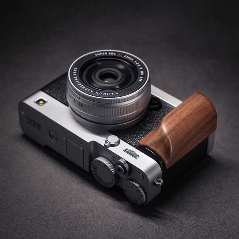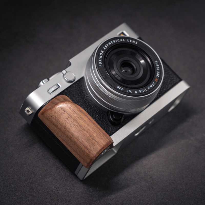Do you want to purchase a premium gift for someone who owns a Fuji XE5 camera? A wooden grip serves as both a design addition and functional enhancement for photography enthusiasts.